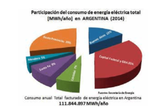 Entre 1970 y 2014, el consumo total facturado de energía eléctrica se incrementó en más de un 850% llegando a unos 112 millones de MWh/año.