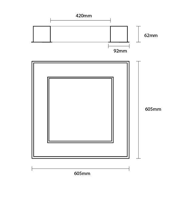 Luminaria de embutir en cielo raso de placas tipo durlock o armstrong de 600x600mm. Equipado con placas de led de alta potencia dispuestas en forma CUADROMETA lo cual garantiza una distribución simétrica cualquiera sea el sentido de orientación. Cuerpo construido en chapa de acero doble decapada con terminación aluminio brillante con opción de difusores en PMMA blanco mate.