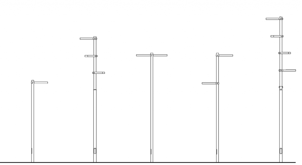 Esta farola es un árbol de luz que nació con un triple objetivo: ofrecer una iluminación proyectada hacia el pavimento, consumos reducidos y un número opcional de luminarias en distintas alturas y posiciones. Luminaria de diseño moderno, adecuada para aplicaciones de alumbrado en parques y espacios públicos. Cuerpo en extrusión de aluminio acabado con pintura epoxi. Grado de estanqueidad IP 66
