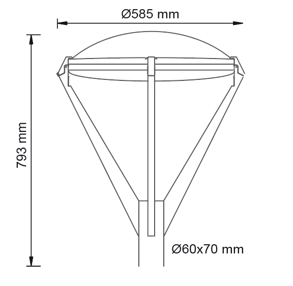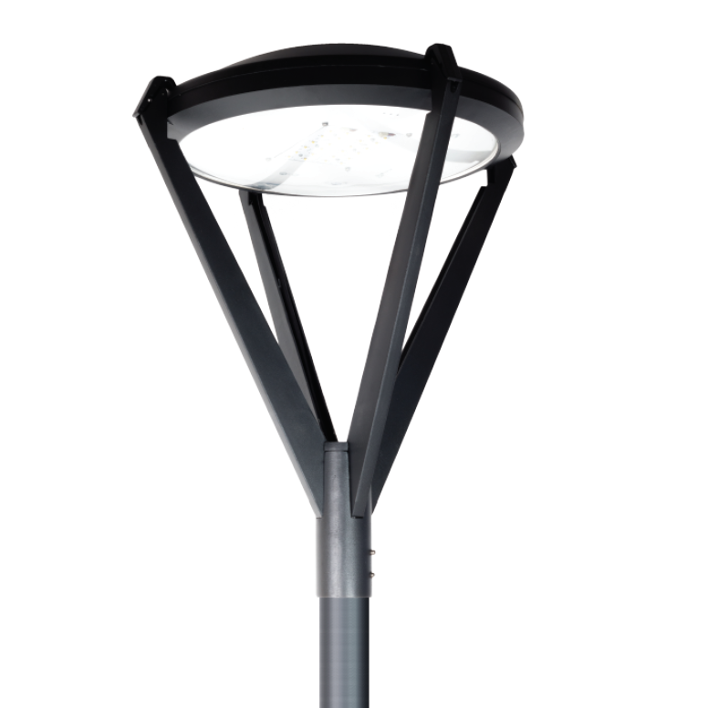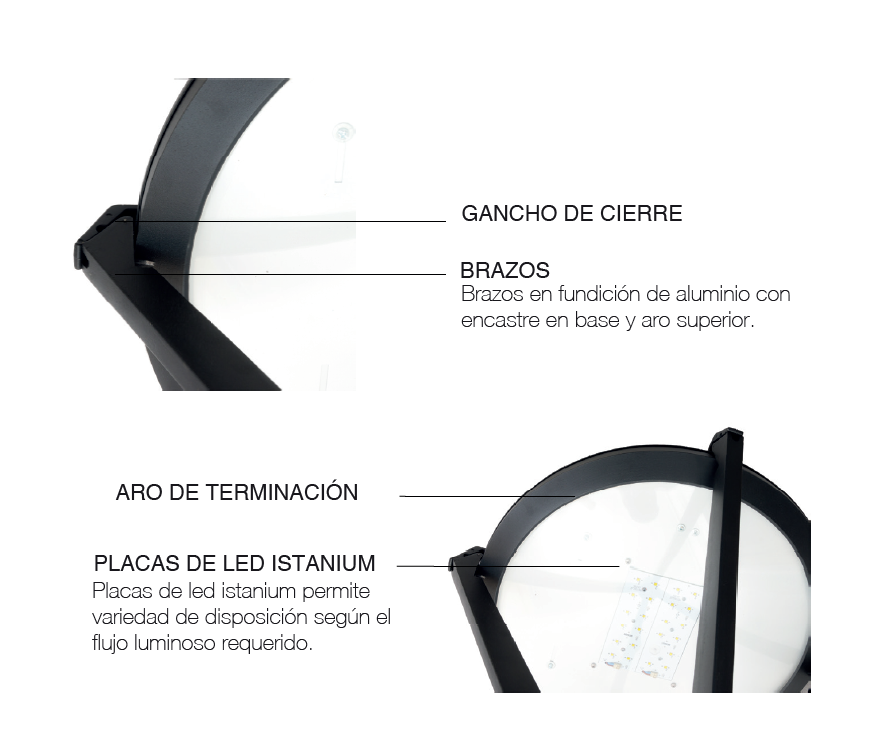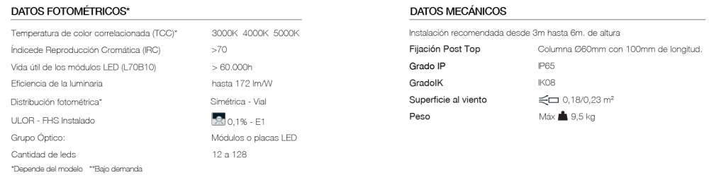 Luminaria FO5 se caracteriza por su diseño urbano decorativo con iluminación general difusa. Su fijación post-top desde Ø60 mm en función del adaptador. Es una luminaria de clase I, materializado en fundición de aluminio, que cuenta con cuatro brazos de soporte para el grupo óptico de LED con tapa cóncava de repusaje, y difusor de policarbonato transparente. El driver se aloja dentro del recinto óptico, el cual se encuentra unido a la estructura mediante cuatro ganchos de cierre a presión. El modelo CNX se presenta como la última versión de FO5 avanzando en líneas más sutiles y menor resistencia al viento, manteniendo la tecnología LED que garantiza mayor flujo luminoso requerido con menor consumo.