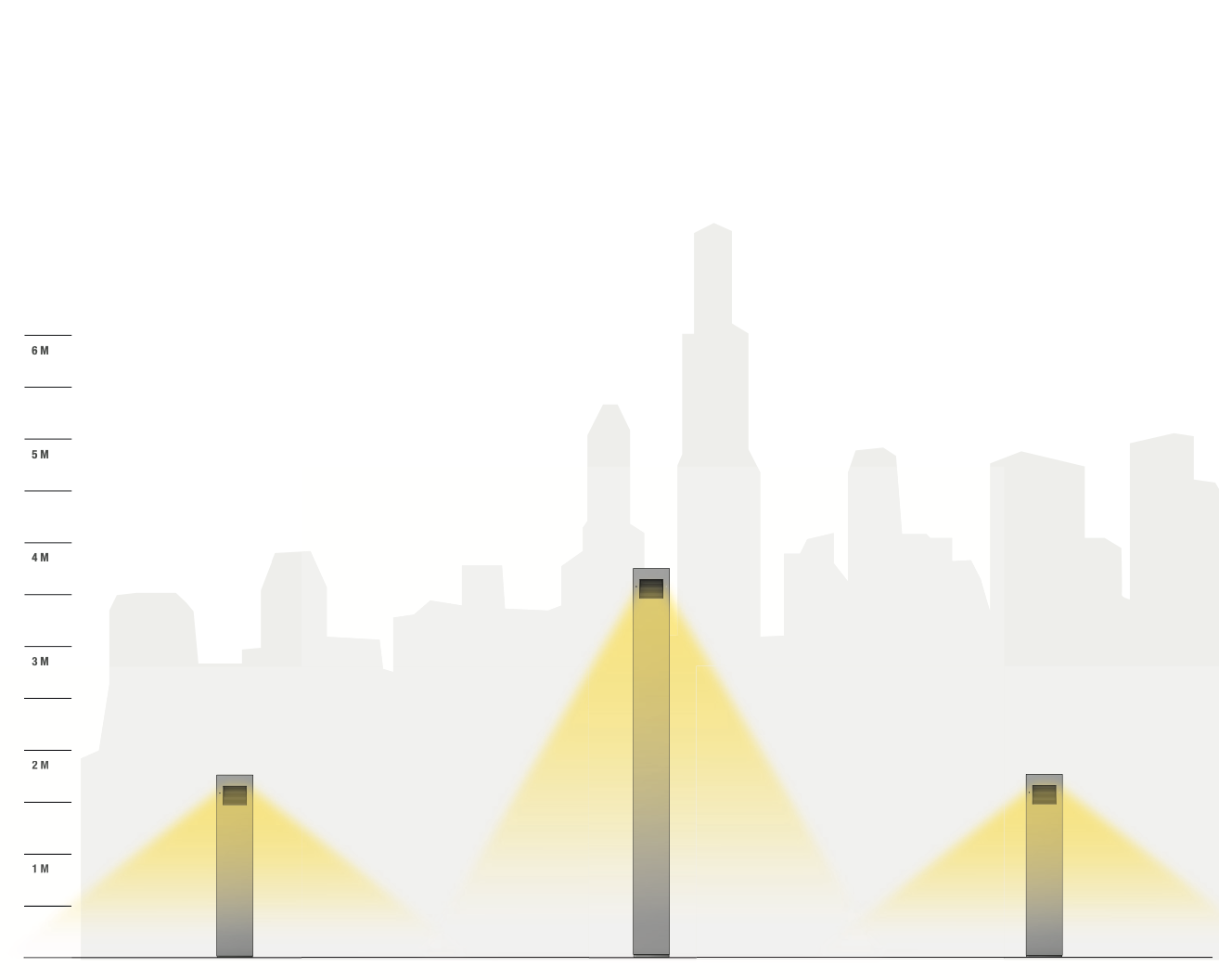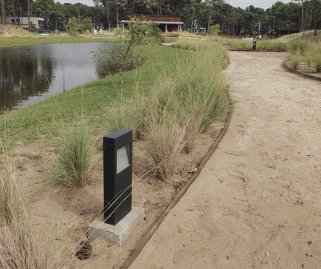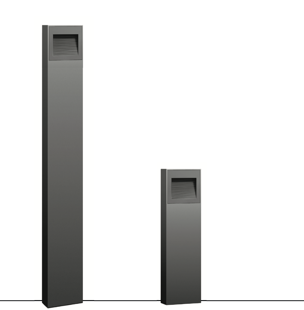 Luminaria de diseño moderno, en dos alturas, adecuada para aplicaciones de alumbrado en parques y espacios públicos. Ideal para delinear senderos y bicisendas. Luminaria hecha de perfiles de aluminio, aleación de aluminio y acero inoxidable. Conjutno óptico en la parte superior, IP65 , con leds alta potencia y lentes. Anclaje de luminaria con columna embutida en piso. Cuerpo inferior de la luminaria con puerta de inspección insertadas de aluminio inyectado y pestillo en la misma. Clasificacion de la Luminaria: clase de protección IP 65.
