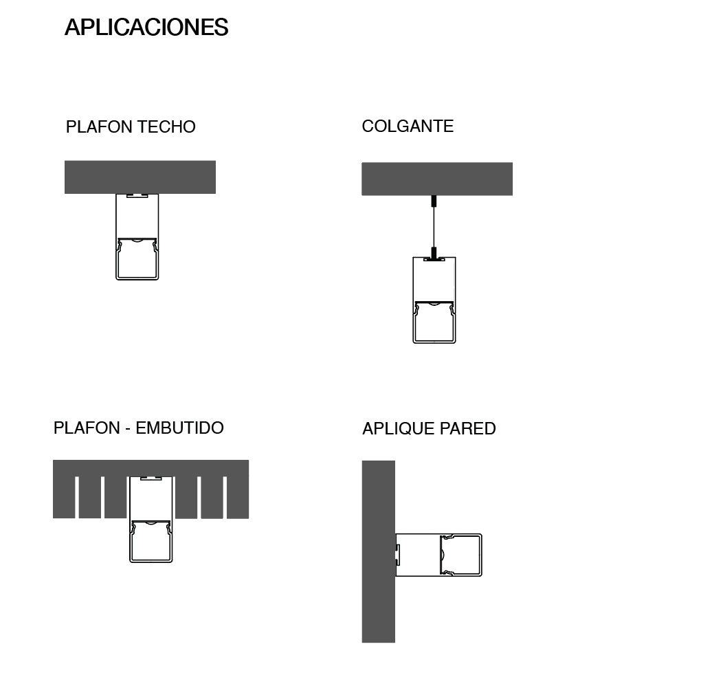 Luminaria lineal de LED para instalación en techo, aplicado o suspendido. Cuerpo de aluminio extruido pintado, disponible con diferentes longitudes y disposiciones. Difusor en policarbonato facetado. Alimentación integrada y equipado con conectores para garantizar la continuidad de la alimentación.
